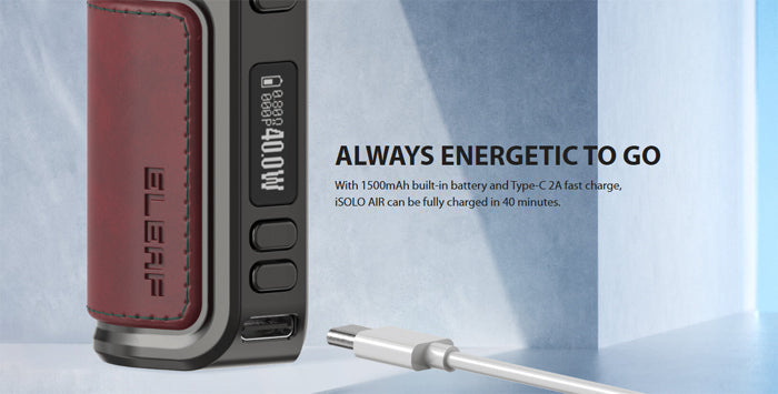 Thanks to the option of adjustable wattage, you have full control over power output to match different resistance coils, you can also adjust the iSolo to deliver your perfect level of vapour every time. The long-life battery can recharge in as little as 40 minutes. Additionally, this will deliver up to a full day of vaping. Although it features a bigger battery, this kit is still small enough to fit into a pocket or bag.